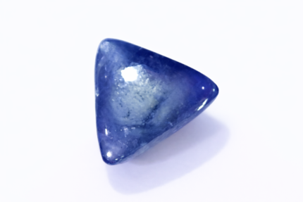 This Natural Blue Sapphire (Neelam) features a smooth oval cabochon cut, a traditional gemstone cutting style that highlights the natural color and internal characteristics of the stone rather than brilliance.