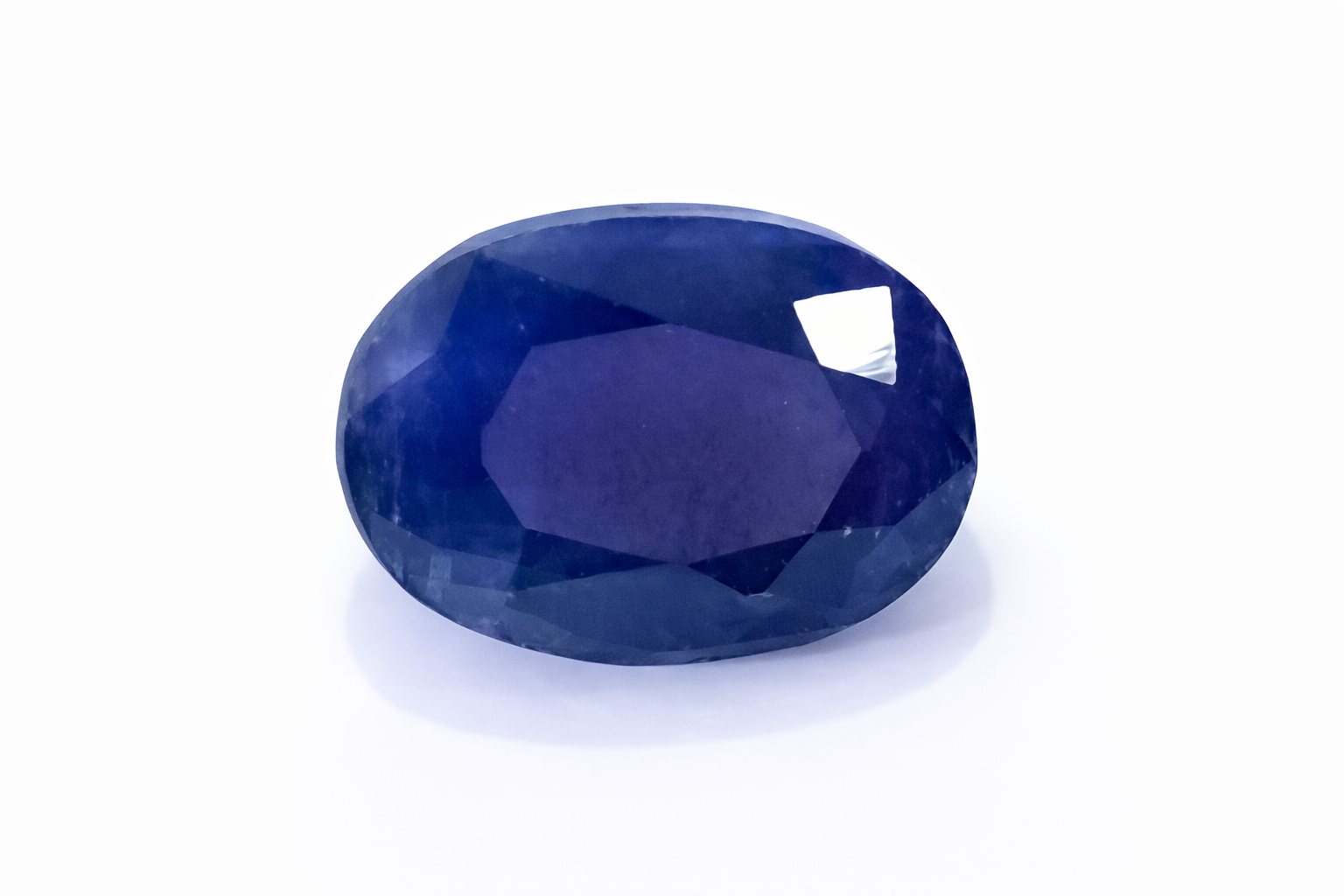 The gemstone displays a deep royal blue body color with subtle bluish-violet undertones, giving it a rich and elegant appearance. The faceted surface reflects light across the gemstone, creating a soft sparkle while maintaining the natural depth of color.
