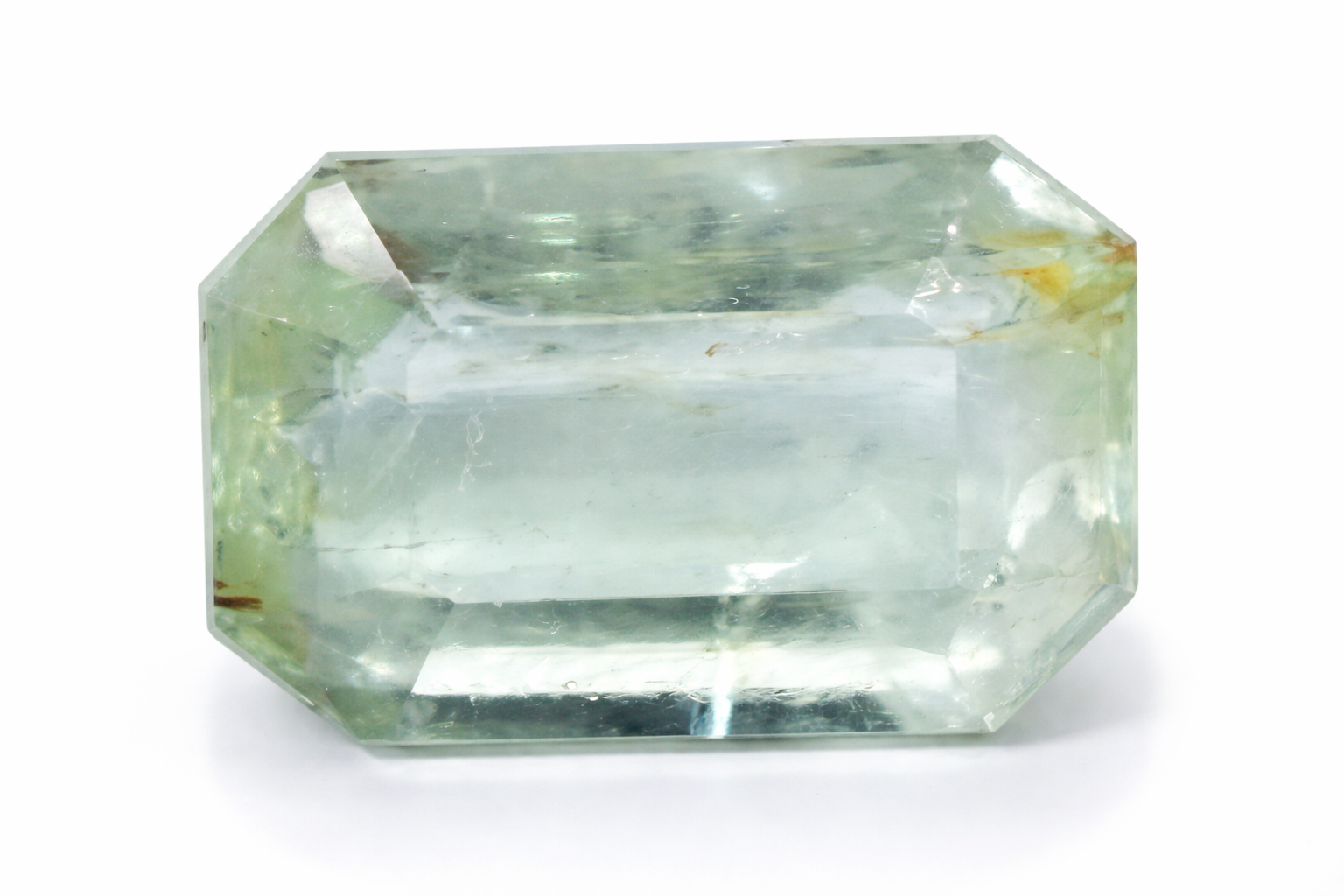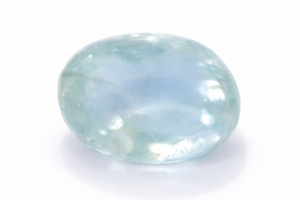 The gemstone displays a very light greenish-blue to pale aqua color, offering a soft and calming visual appeal. Its transparent to semi-transparent body allows light to pass through, producing a gentle glow rather than intense brilliance.