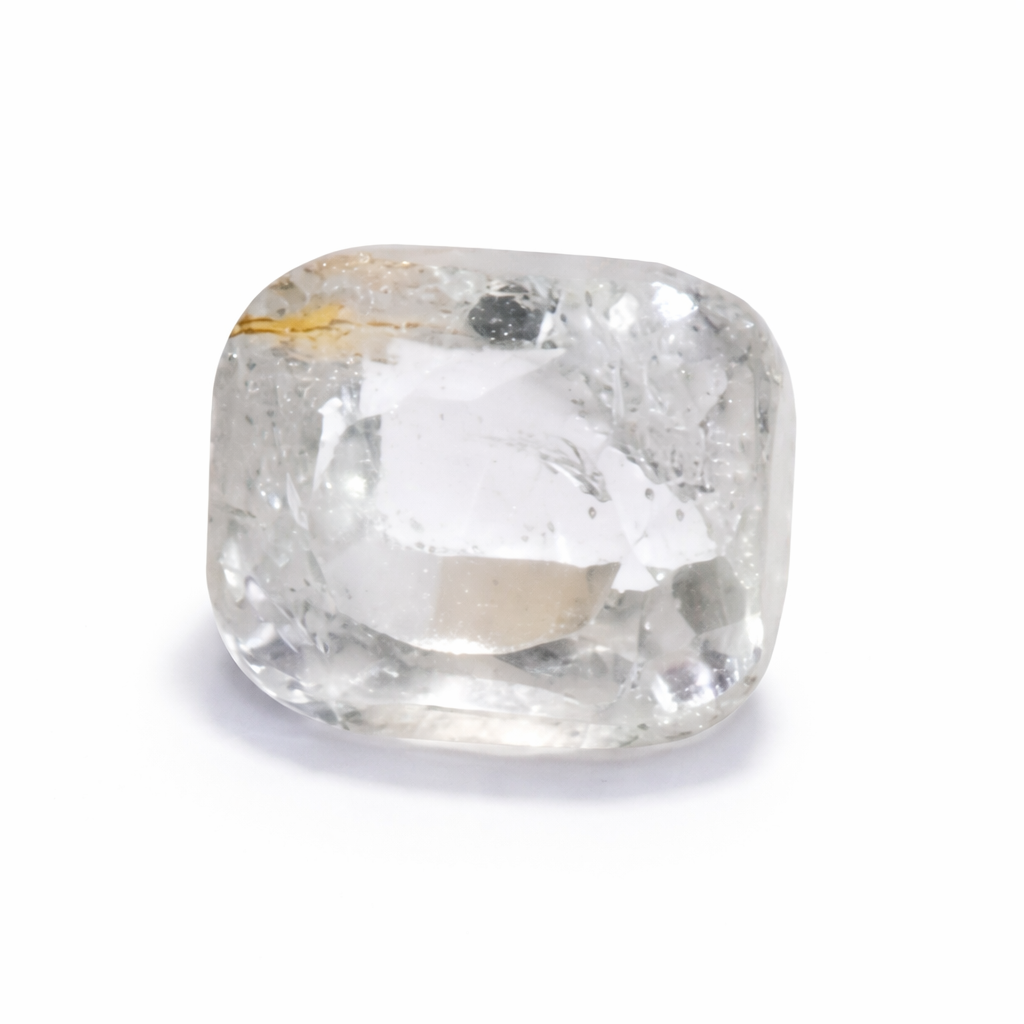 Rather than high clarity brilliance, this stone offers a textured, organic appearance with soft reflections across its faceted surface. Its slightly icy tone combined with earthy inclusions makes it ideal for jewelry that celebrates uniqueness and raw beauty.