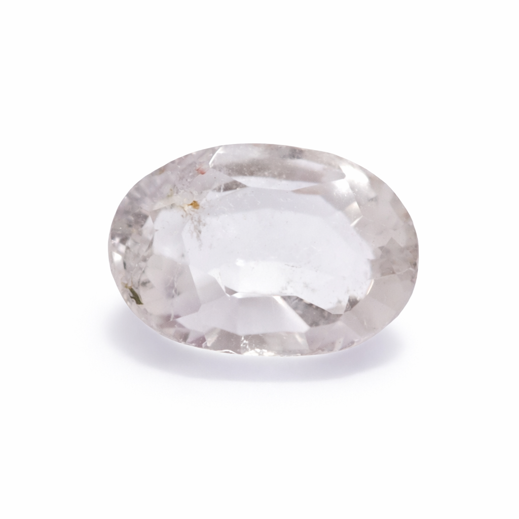 This is a natural white sapphire in a graceful oval shape, featuring a soft near-colorless body tone with slight natural inclusions visible inside the stone — a hallmark of genuine, untreated gemstones.